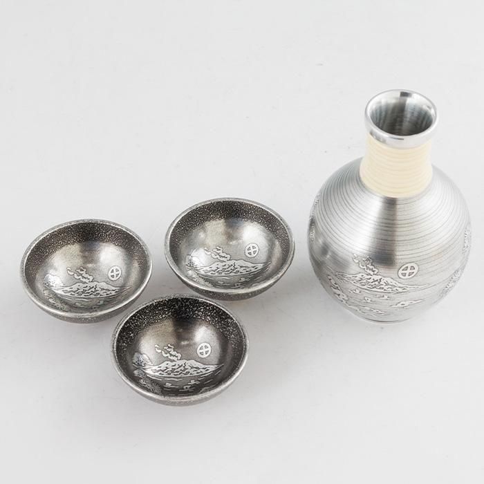 錫 酒器セット 桜島 盃3ヶ 黒漆加工 200ml [No.63-1]