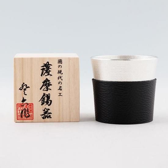 錫 タンブラー オンザロック 白吹雪加工 黒色革カバー 260ml [No.86A-1-KB-1]
