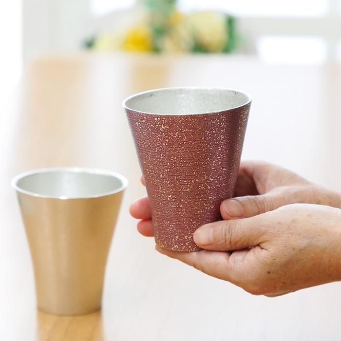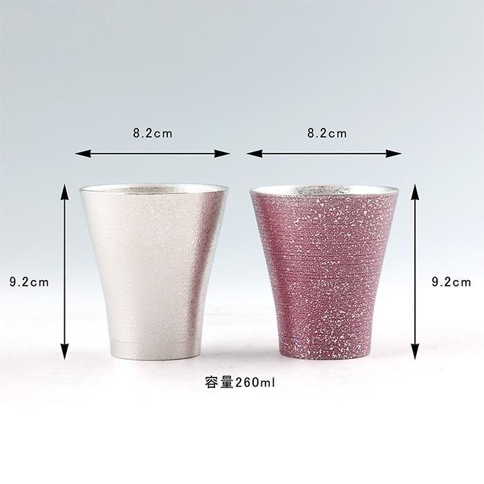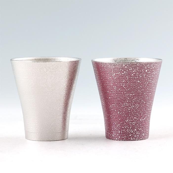 人気の錫タンブラー「フリーカップゼロ(No.77A-1)」に、白吹雪加工と紫吹雪漆加工を施したペアセットです。