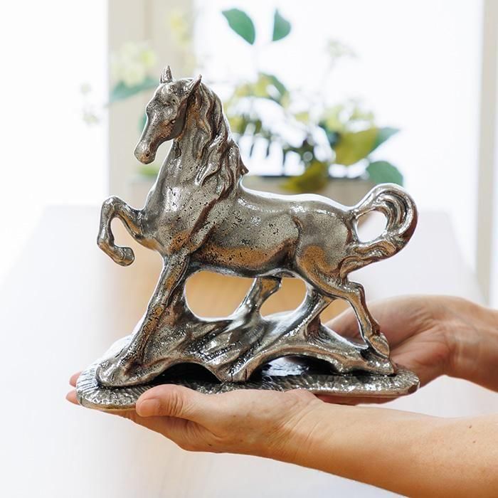 薩摩錫器は鹿児島の伝統工芸品であり、こちらの馬の置物もひとつひとつ職人の手で仕上げられる逸品です。 新しいことをスタートされる方への贈り物としても最適です。